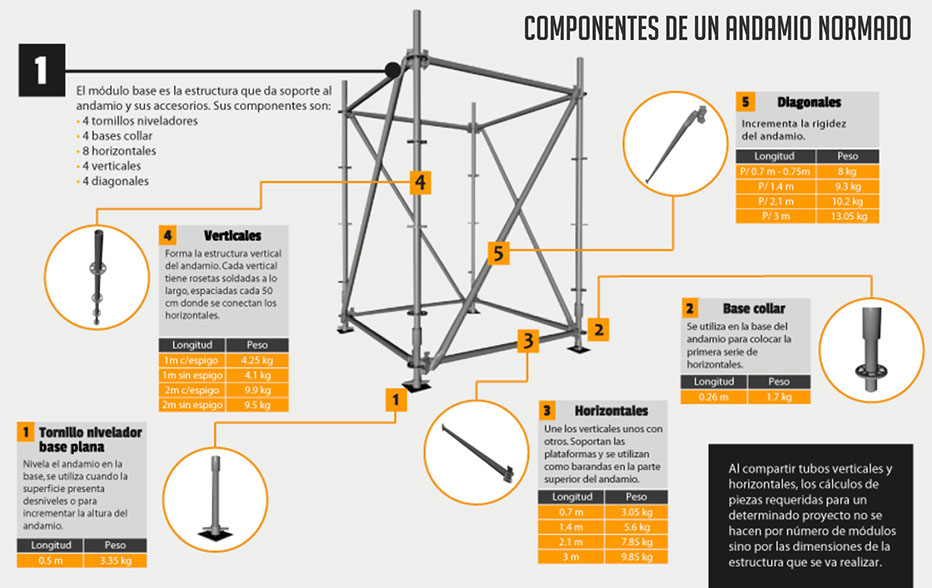 Elaboramos planos detallados de los andamios para su fácil armado. VISTA DE PLANOS EN 3D